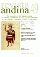 Contenido: De sacerdotes del Tawantinsuyu a cofrades coloniales: nuevas evidencias sobre los Acustupa y Viracocha Inga de Copacabana. Mercedes del Río. -- Tumbas, metalurgia y complejidad social en un páramo del altiplano surandino. Pulacayo, Bolivia, primer milenio d. C. Pablo José Cruz. -- Organización socio-espacial del Cuzco prehispánico: datos sobre la repartición de tierras de los grupos aristocráticos incas. Laurent Segalini. -- La dentera multilingüe e intercultural en las sociedades andinas (conflictos de lengua, habla y escritura). Enrique Ballón Aguirre. -- Estado, modernización y la Ley de Conscripción Vial en Perú. Mario Miguel Meza Bazán. -- El plano más antiguo del Cusco en 1643. Un análisis urbanístico en dos parroquias de indios en los siglos XVI y XVII. Jessica Esquivel Coronado. -- Etnonimia y relaciones interétnicas entre los panos meridionales (siglos XVII-XX). Lorena Córdoba , Diego Villar.